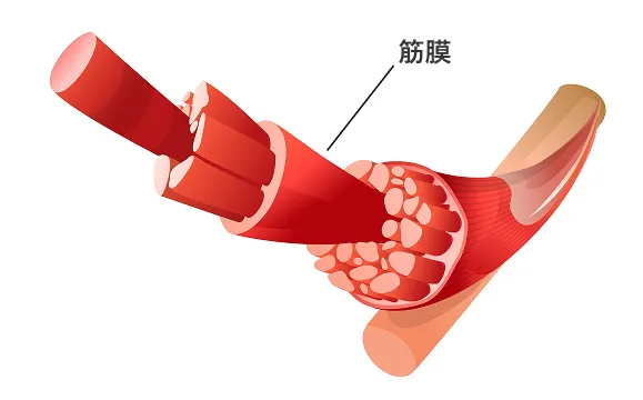 筋膜は、筋肉の表面や筋繊維、骨、臓器、血管、神経など、あらゆる組織を包み込み、つなぎ合わせる膜のことです。筋膜は身体の構造と動きを支える重要な組織です。組織同士の滑らかな動きを助け、衝撃を吸収し、身体全体の動きを調和させる役割を果たしています。