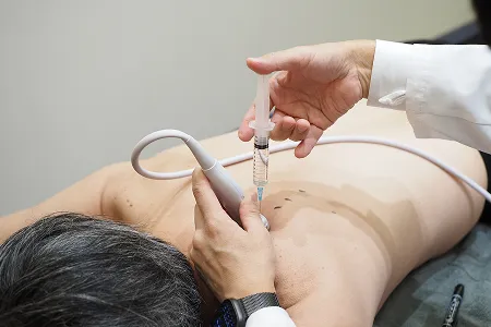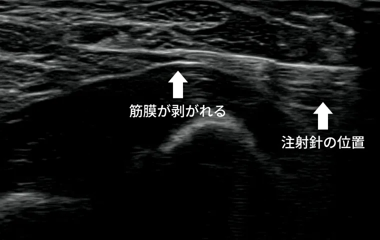 こうした滑走障害を起こしている部位に対して、生理食塩水などを注入しながら組織間の隙間を広げることで、痛みや可動域の制限を改善することが可能です。